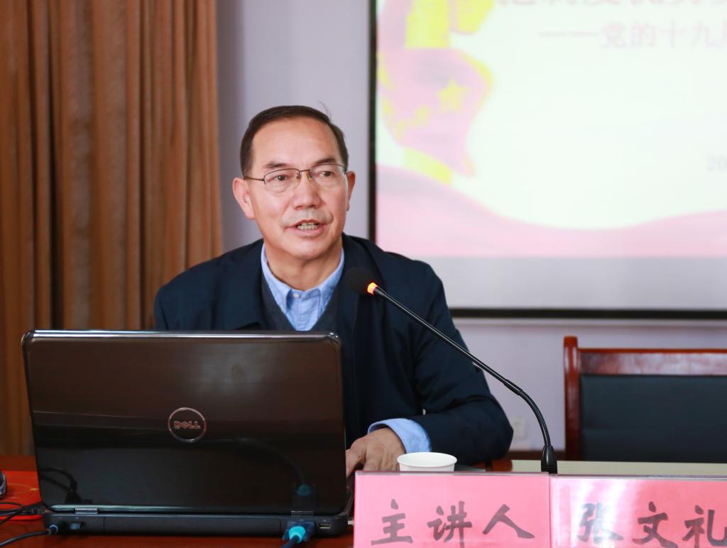1210日,省委讲师团成员、西北师范大学张文礼教授应邀来校,以“把制度优势更好转化为治理效能”为题作党的十九届四中全会精神专题辅导报告。学校党委书记余学军,党委副书记、纪委书记王莹成,党委委员、副校长张建辉、任永峰、王胜青、张勇,全体中层领导干部聆听了报告。报告会由张建辉主持。