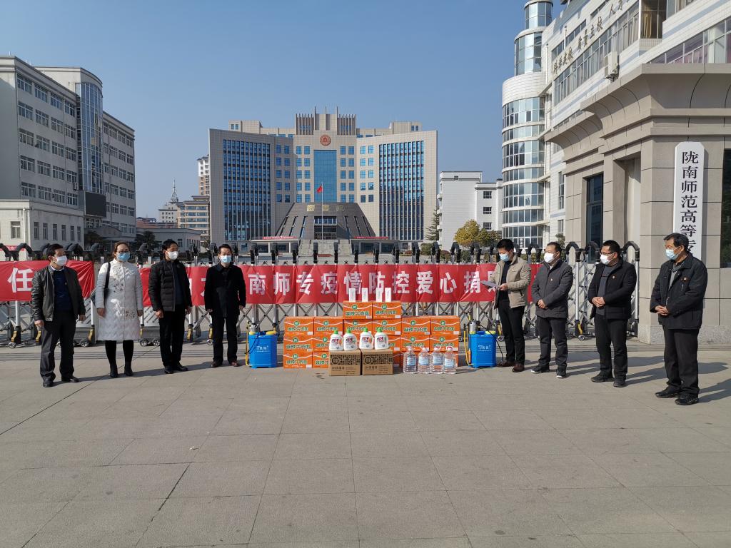捐赠企业表示:“当前正值疫情防控的关键时期,疫情防控任务重、难度大,我们希望通过捐赠防疫物资为陇南师专疫情防控工作贡献一份自己的力量,担负起应有的社会责任。”