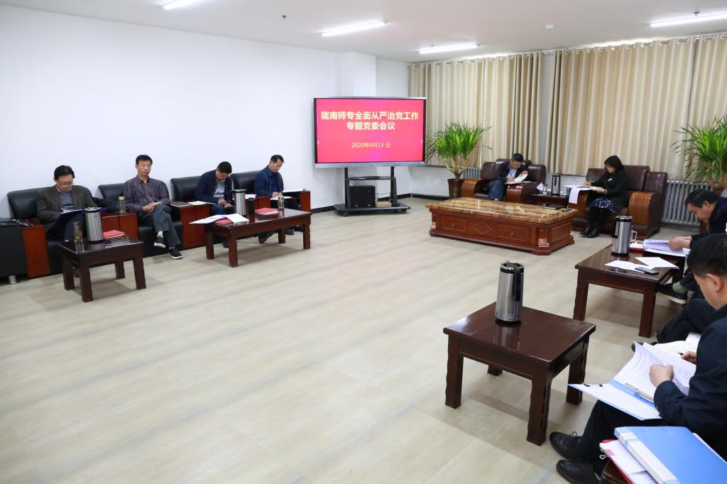 4月13日下午,学校召开全面从严治党工作专题党委会议。党委书记余学军主持会议,校长、党委副书记李艳红,党委副书记王莹成,副校长张建辉、任永峰、王胜青、王录全、张勇,纪委书记、监察专员镡旭东参加会议。