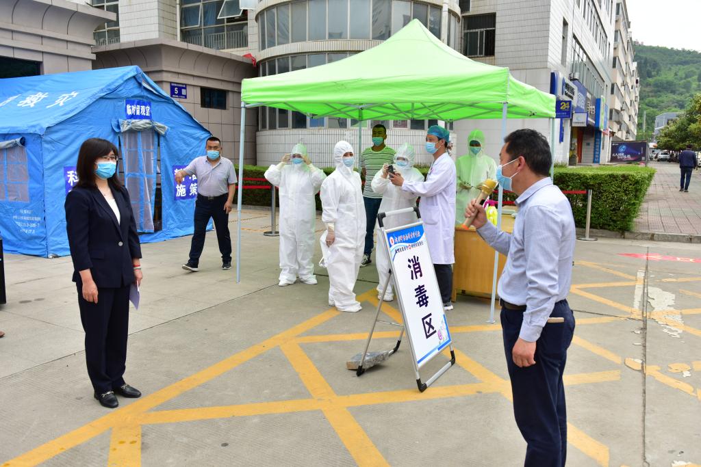 为全面落实省委省政府、省教育厅关于高校防控疫情工作相关要求,切实提高学校疫情防控应急处理能力,确保师生身体健康和生命安全,做到安全、有序开学,5月15日,学校组织开展了学生春季开学返校疫情防控演练。校长李艳红指挥演练。成县卫健局、疾控中心、中医院等单位负责人应邀参加演练,学校领导王莹成、张建辉、王胜青、王录全、张勇、镡旭东和相关部门负责人及演练现场各工作组、安保人员、师生代表近100人参加了演练。