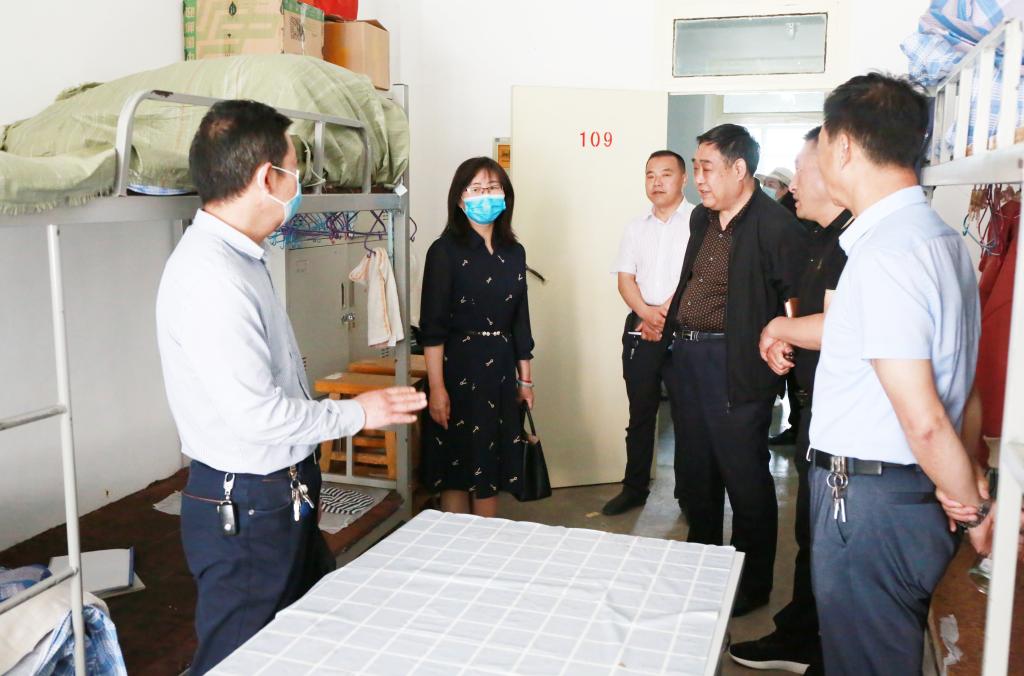 5月18日上午,校长李艳红,副校长王录全、张勇深入校门口体温检测点、餐饮综合楼、学生宿舍楼等场所,检查指导学生返校疫情防控准备工作。
