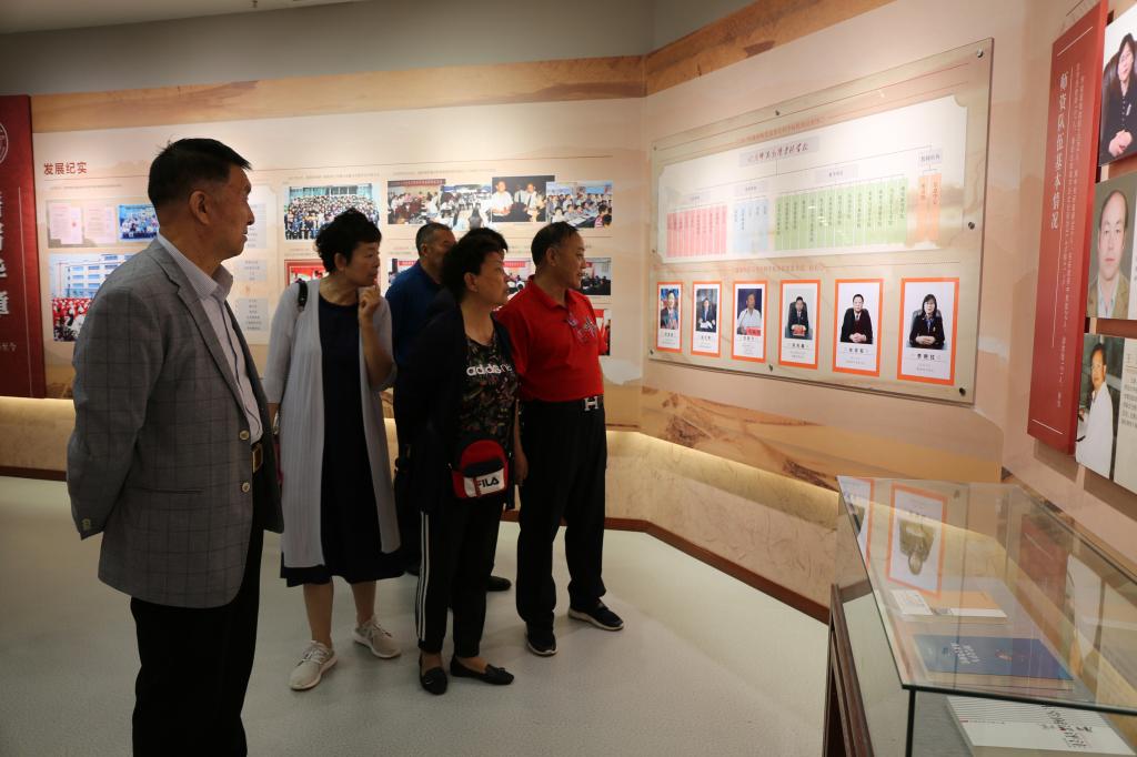 在校史馆,校友们通过图片、实物一一了解了学校的发展历史和近年来的改革发展成就,大家一边参观一边拍照,不时流露出欣慰与自豪之情。一幅幅图片、一个个故事,深深地吸引了校友们的目光,大家认真观看、聆听,不禁追忆起当年在校读书期间的美好时光。