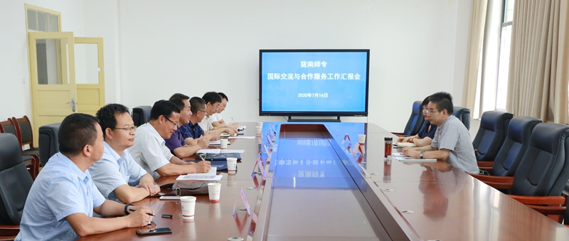 汇报会上,副校长张建辉对梁翔一行来校调研指导工作表示欢迎,对梁翔主任多年以来给予学校宣传、外事以及国际交流工作的大力支持表示表示感谢。他介绍了学校的办学历史、取得的成绩、下一步发展的目标设想,希望甘肃省教育国际交流与合作服务中心在外籍教师选聘、学生“专升硕”、教师攻读博士学位等方面给予学校更多的支持和帮助。