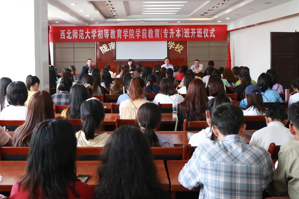 9月7日上午,beat365举行西北师范大学初等教育学院学前教育(专升本)班开班仪式。校长李艳红、副校长王胜青出席仪式,教务处、学生处、学前教育学院等部门、学院负责人,西北师范大学初等教育学院学前教育(专升本)班100名新生参加了仪式。仪式由王胜青主持。