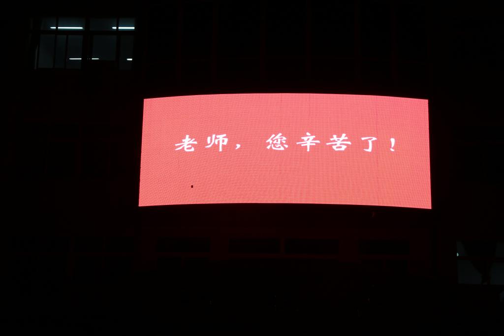 活动中,学校办公楼、科技楼以及餐饮楼的LED电子大屏以字幕滚动方式播放了“老师,您好!”的字样及图片。短短几个字,表达了对老师的崇高敬意和真诚祝福,同时,新媒体中心学生干部还制作了题为《今天的你明天的我》、《教师节为教师“亮灯”》两个短视频,在科技楼大屏滚动播放,并在学校官方抖音号发布,为广大教师送上了节日的祝福,为教师节营造了浓浓的节日氛围。