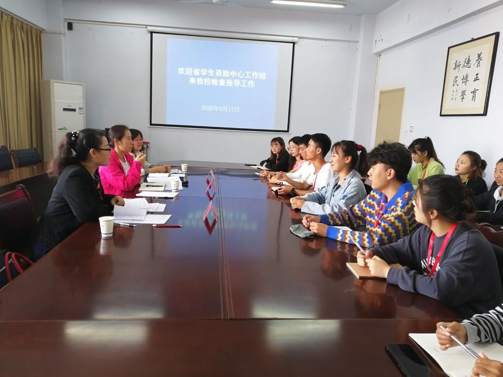 9月17日,省学生资助管理中心副主任刘岚一行三人来beat365检查指导学生资助工作,副校长张勇,学生处处长李晓江、副处长武燚,财务处副处长任杰以及各学院分管学生工作领导、辅导员、学生代表共计60余人在四楼会议室参加了汇报会,会议由张勇主持。
