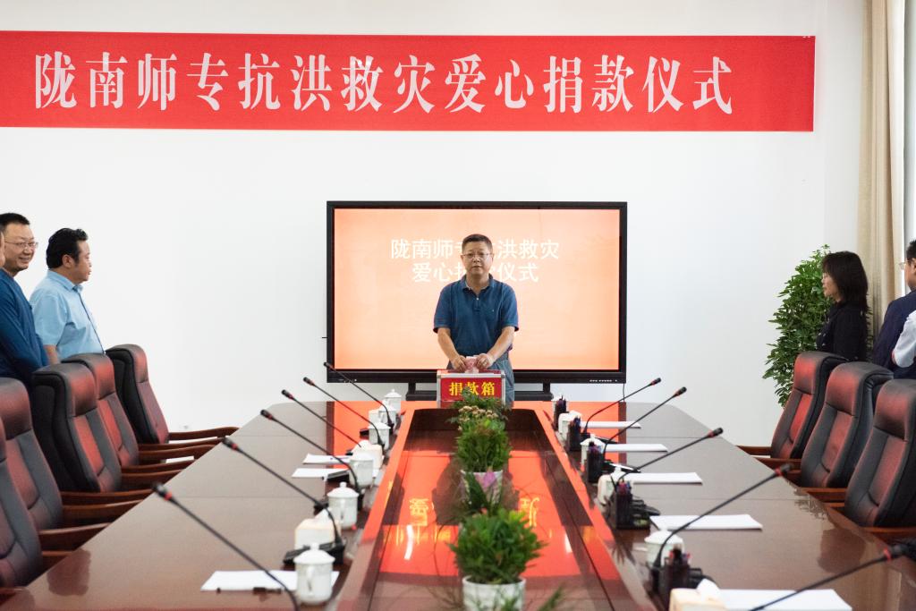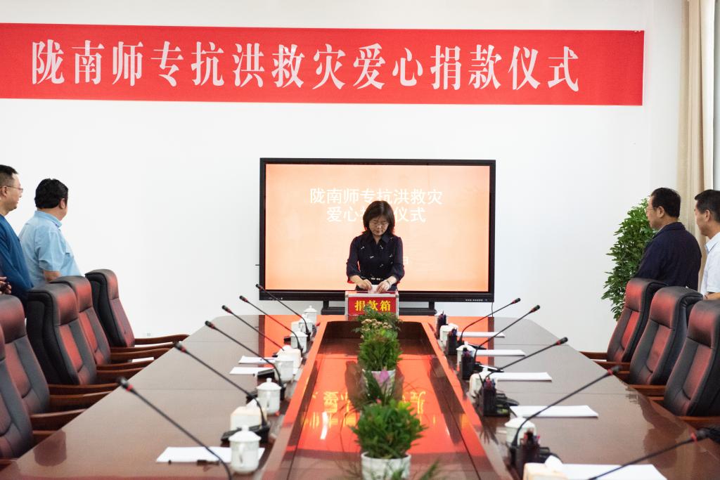 9月17日下午,在图书馆三楼会议室,党委书记余学军、校长李艳红带头将承载满满心意的捐款依次投入捐款箱中,以实际行动支持地方救灾重建工作。随后,学校各单位职工排队一一捐款,纷纷献上自己的一份爱心,支持救灾工作,让五库群众的生产生活早日恢复正常。