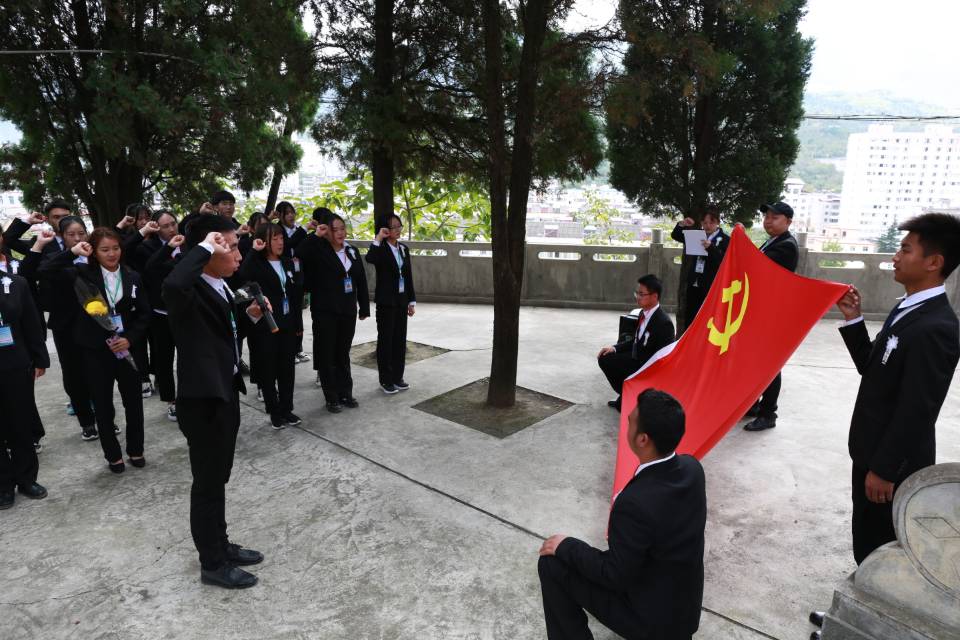 学生代表高海鹏和李敏分别讲述了九一八事变和红二方面军在成县的作战经过。随后,同学们面朝纪念碑和党旗,郑重地宣读入党誓词,铿锵有力的誓词表达着同学们努力奋斗的信心和决心。全体成员奏唱“九一八”歌曲,并清扫了革命烈士英雄纪念碑陵园。