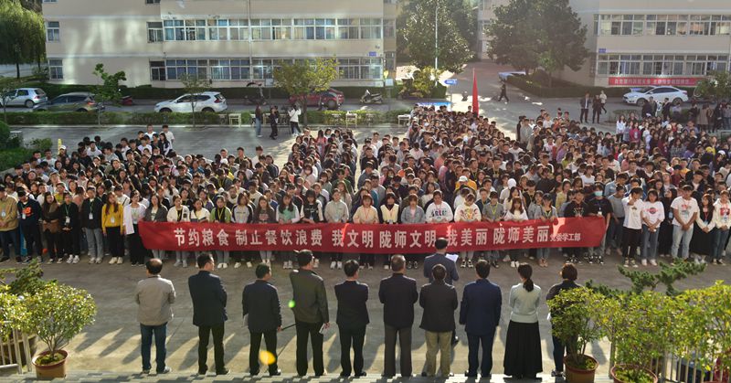 最后,大会举行了“节约粮食,制止餐饮浪费,我文明,陇师文明,我美丽,陇师美丽”师生签名活动,引导师生进一步增强节约意识,杜绝“舌尖上的浪费”,从自身做起,提升自我思想政治水平,爱护校园环境,让“珍惜粮食,文明陇师”成为校园新风尚。(师 良)