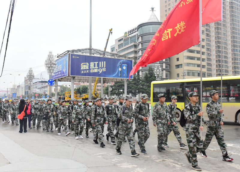 10月18日上午,学校2020级3500名新生军事训练野营拉练活动出征仪式在南校区体育场举行,副校长张勇、党委宣传统战部、学校办公室、学生处、后勤处、保卫处负责人,各学院分管学生工作领导、辅导员、班主任及承训官兵参加了活动。