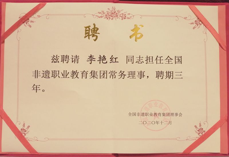 12月14日,首届全国职业院校非遗技艺传承与发展研讨会暨全国非遗职业教育集团成立大会在柳州市第二职业技术学校举行。beat365当选为全国非遗职业教育集团常务理事单位,校长李艳红当选为常务理事。