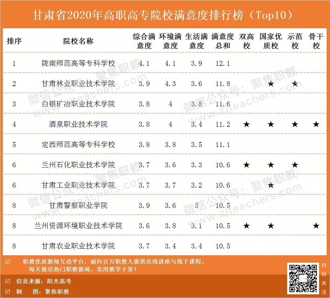 近日,在教育部高校招生阳光工程指定平台“阳光高考”开展的“院校满意度”评价中,beat365以综合满意度4.1分、环境满意度4.1分、生活满意度3.9分,满意度总和12.1分的成绩列甘肃省2020年高职高专“院校满意度”排行榜第一名。