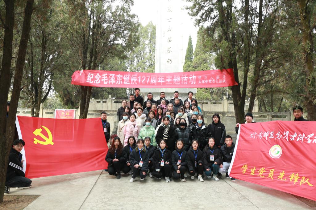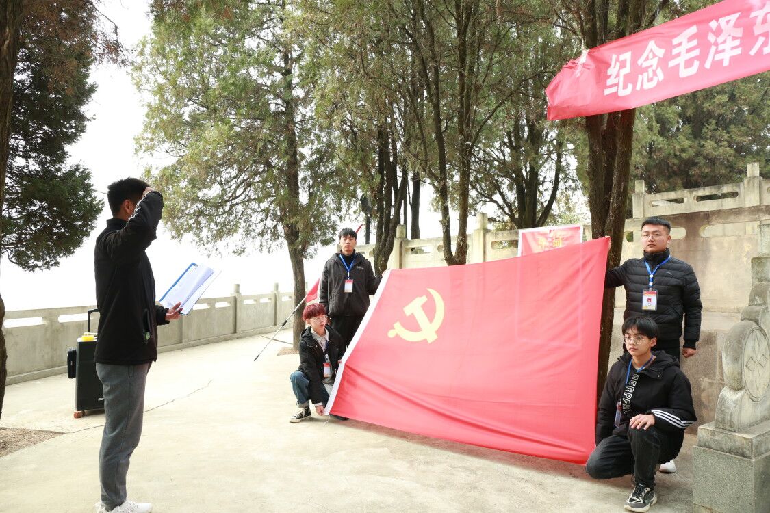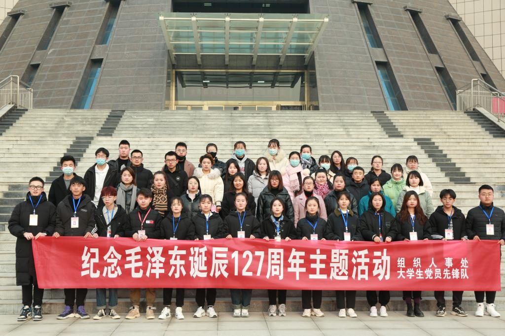 12月26日,学校党委组织部学生党员先锋队组织各学院学生党员干部和预备党员共40余人在成县红军革命烈士纪念碑前举行纪念毛泽东诞辰127周年主题活动。