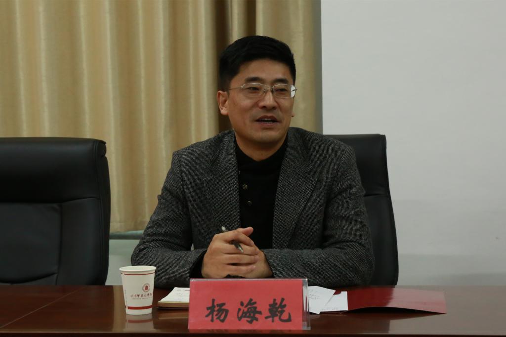 在随后举行的座谈会上,党委书记余学军对杨海乾来校考察交流表示欢迎,并介绍了学校的办学历程和办学特色。杨海乾介绍了此次来校考察的目的,表达了下一步与学校合作的意向。农林技术学院、机电工程学院、电子商务学院等相关学院负责人就所关心的问题与杨海乾进行了深入交流。