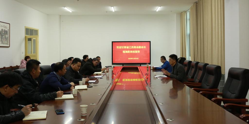 12月24日,江苏省甘肃商会常务副会长、南通分会会长杨海乾来beat365就校企合作、学生实习就业等相关工作进行调研交流。党委书记余学军、副校长王胜青以及相关处室、学院负责人陪同调研并进行交流。