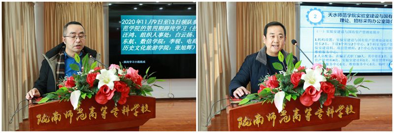 会上,农林技术学院党总支书记杨小录、国有资产管理中心主任李瑞智、美术与设计学院院长宋涛、招生就业处处长汪鸿、团委办公室主任兰青先后分享了跟岗学习的体会、感受和主要收获。