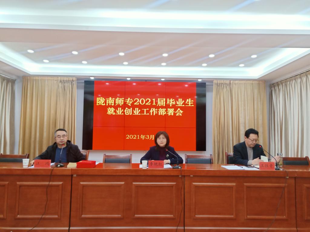 3月8日下午,学校2021届毕业生就业创业工作部署会在电子商务学院三楼报告厅召开,校长李艳红、副校长王胜青出席会议,招生就业处、教务处、学生处、团委负责人,各学院就业创业工作领导小组组长、副组长、就业工作专人参加了会议。