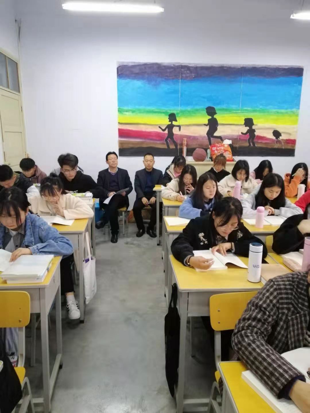 3月8日早上8点,副校长王胜青和马克思主义学院负责人坐在教室,与同学们一起听马克思主义学院杨垚和杨涛两位老师讲授的开学第一课。