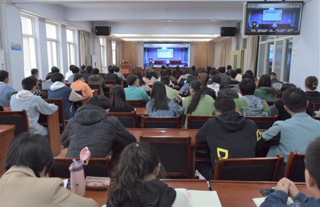 3月25日下午,由甘肃省委宣传部、省委教育工委、省委讲师团联合举办的全国两会精神进高校宣讲报告会在兰州大学举行。全国政协委员、兰州大学校长、中国科学院院士、省委宣讲团成员严纯华作了题为《学习贯彻两会精神——不忘初心、逐梦前行》的宣讲报告。报告会通过陇政钉视频形式向全省高校直播,陇南师专电子商务学院学术报告厅设分会场,学校党委班子成员、全体中层干部、团总支书记、学生辅导员和学生代表共300多人参加了报告会。