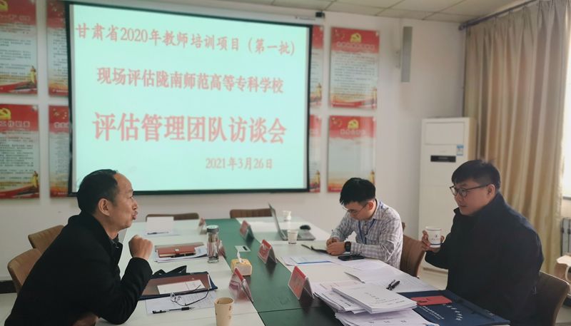 3月26日,以教育部专项督导评估指标课题组成员、日本留学归国教育哲学专业博士顾宇为组长,北京中育智慧教育科技研究院副研究员、专家组助理周航为组员的甘肃省教育厅教师培训项目第三方评估专家组来beat365,对beat365承担的天水市乡村幼儿园教师保教能力提升集中培训项目开展现场评估,并对已经实施过的天水市公民办幼儿园园长法制与安全教育培训、天水市幼儿园新入职教师规范化培训等2个国培项目进行评估验收。