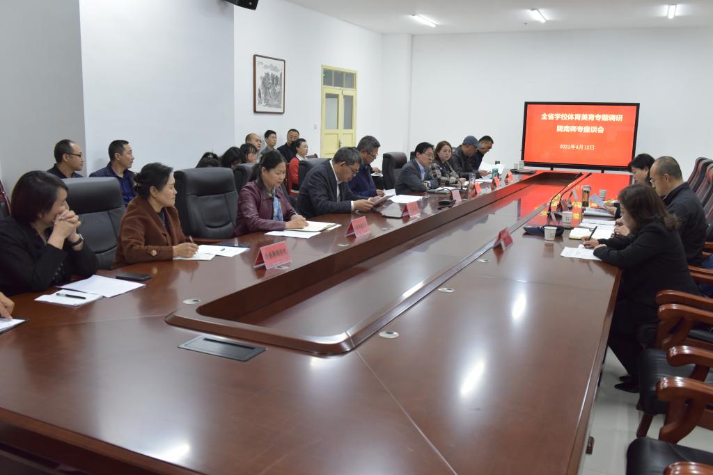 4月12日,以省教育厅体育卫生与艺术教育处副处长张捷为组长,省教育厅职业教育与成人教育处副处长胡晶、兰州市教育局体卫艺科科长任霞、省教科院义务教育研究所教研员王文寰等4人组成的全省学校体育美育专题调研组来beat365,通过实地考察、座谈交流等方式,调研beat365体育美育工作。beat365党委书记余学军、副校长王胜青陪同调研。