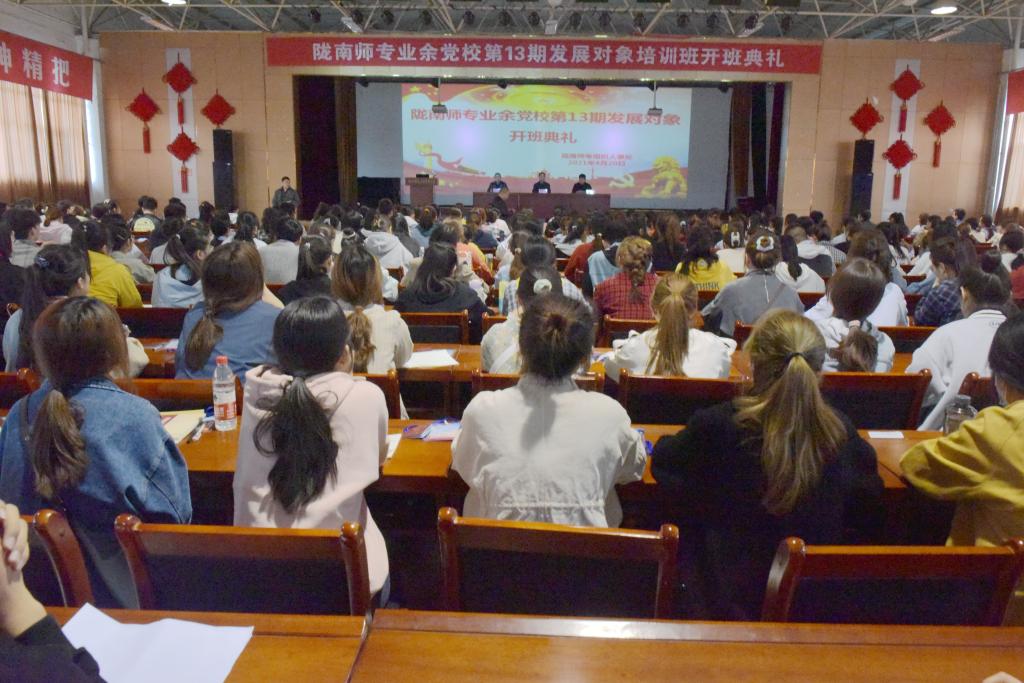 4月20日,beat365业余党校第13期发展对象培训班开班典礼在北校区礼堂拉开了序幕,学校党委委员、副校长张建辉,组织人事处处长张益斌、副处长白云扬参加了典礼,典礼由张益斌主持,349名师生学员参加了培训。