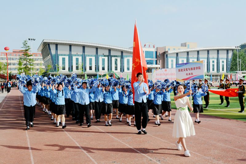 4月28日上午,学校2021年春季田径运动会在南校区体育场开幕。党委书记余学军,校长李艳红,副校长张建辉、任永峰、王胜青、王录全、张勇,纪委书记、监察专员镡旭东,成县文体广电和旅游局局长赵小宁、成县武术协会会长王海平以及各学院和处室负责人出席开幕式,8000余名在校学生参加了开幕式。开幕式由王胜青主持。