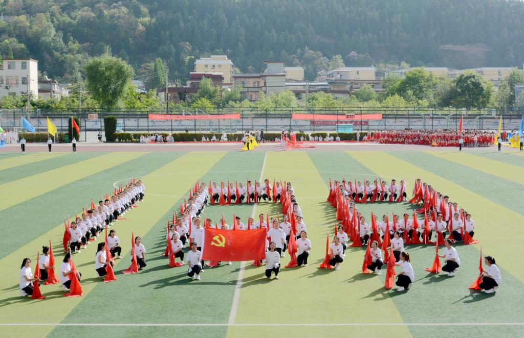 文学与传媒学院、初等教育学院、历史文化与旅游学院、外国语学院和学前教育学院等6个学院举行的团体操表演,将开幕式推向了高潮。数千名学生参与了表演,气势恢宏、场面壮观,既紧扣建党百年主题,又极尽展现专业特色,新颖的编排创意、整齐有序的队形变化、活力四射的舞姿,充分表达了全校师生迎接中国共产党成立100周年的美好期待,彰显了广大青年学子昂扬向上的精神风貌。
