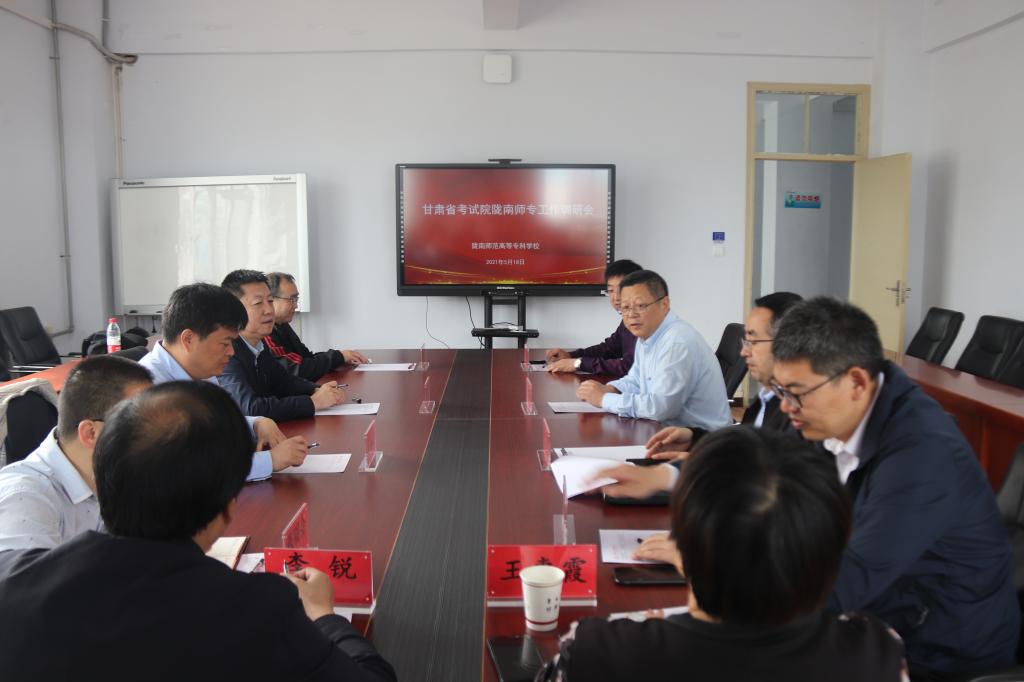 5月18日上午,甘肃省教育考试院副院长田煜一行来beat365调研指导工作。党委书记余学军陪同调研。招生就业处、教务处、电子商务学院、外国语学院、数信学院和继续教育学院负责人参加了调研座谈会。