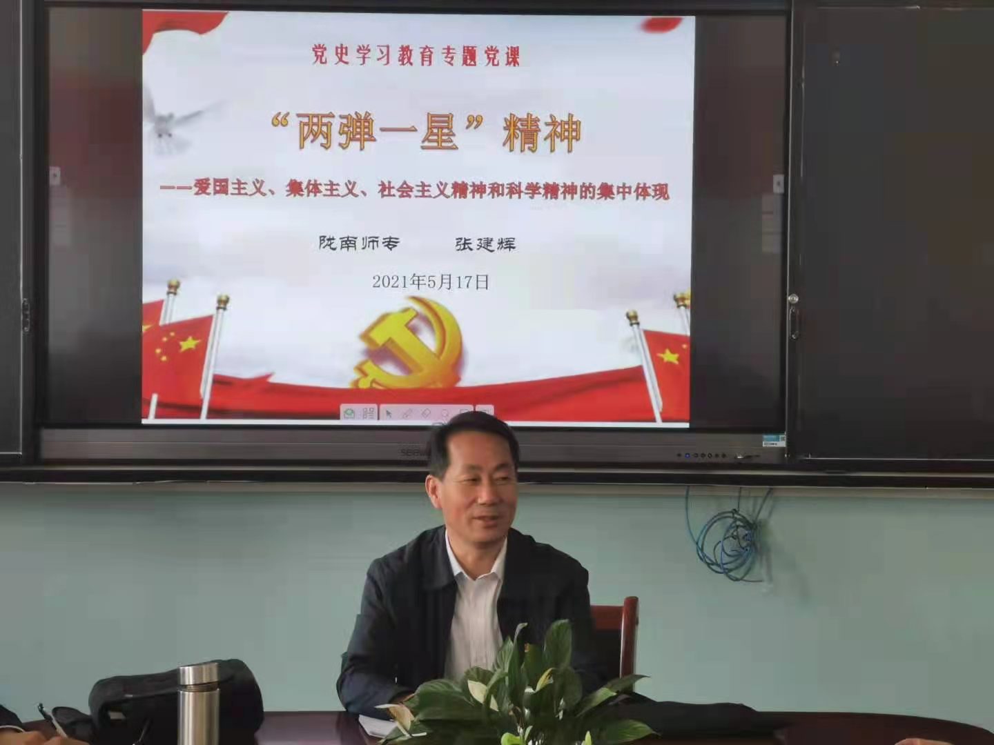 党委委员、副校长张建辉为学前教育学院教师党员、组织人事处党员干部讲授了题为《“两弹一星”精神——爱国主义、集体主义、社会主义精神和科学精神的集中体现》的党课。他用深入浅出地介绍了“两弹一星”诞生的背景、什么是“两弹一星”、“两弹一星”的伟大历史意义以及我国对待核武器的态度,深入分析了“两弹一星”精神的内涵:热爱祖国、无私奉献、自力更生、艰苦奋斗、大力协同、勇于攀登。他要求、广大教师党员、党员干部自觉弘扬“两弹一星”精神,主动担负起为党育人、为国育才职责使命,坚持做到以德立身、以德立学、以德施教、以德育德,为推动学校各项事业高质量发展做出更大的贡献。