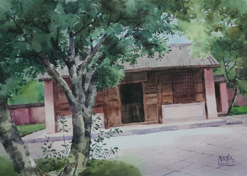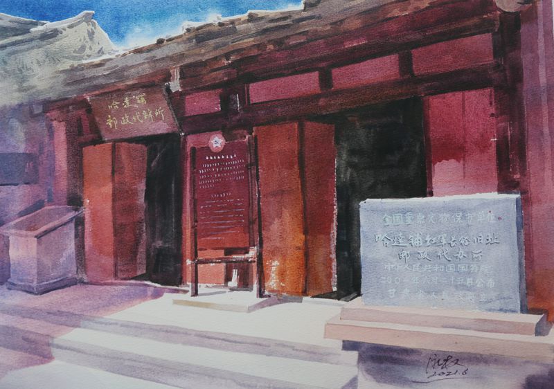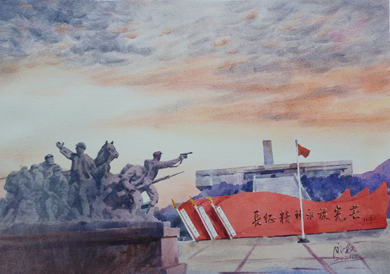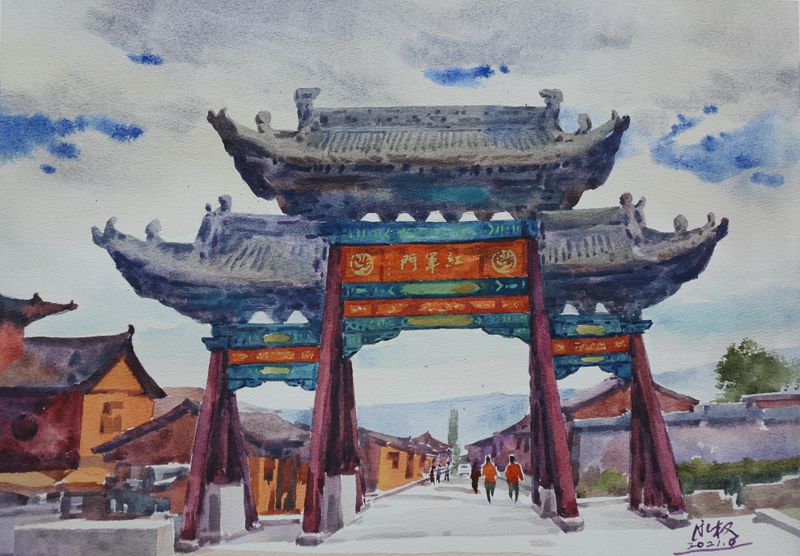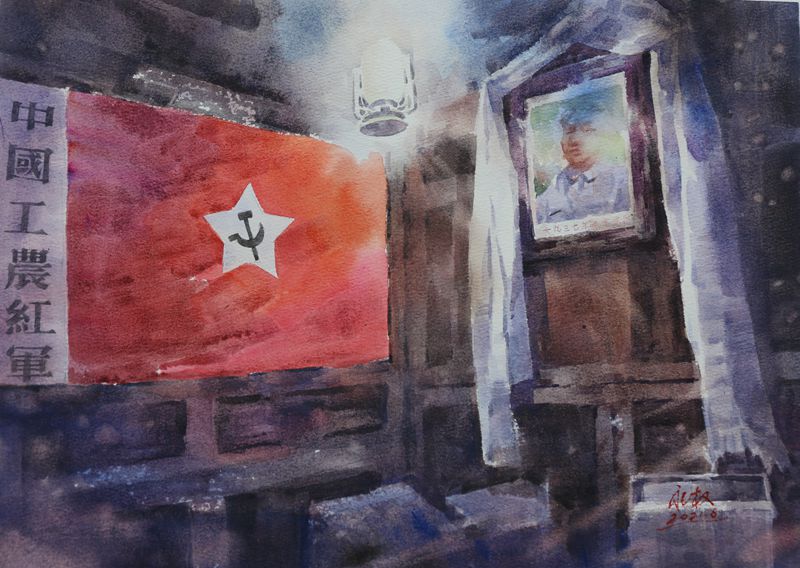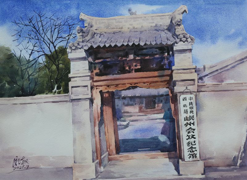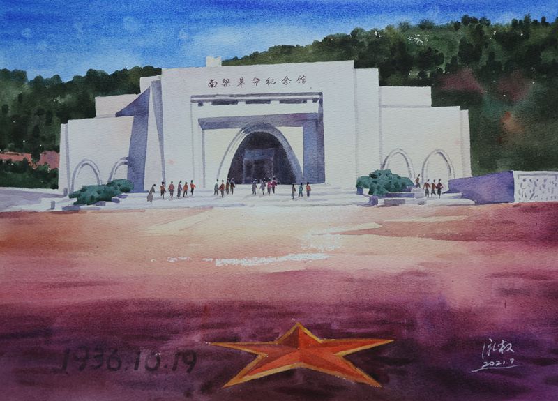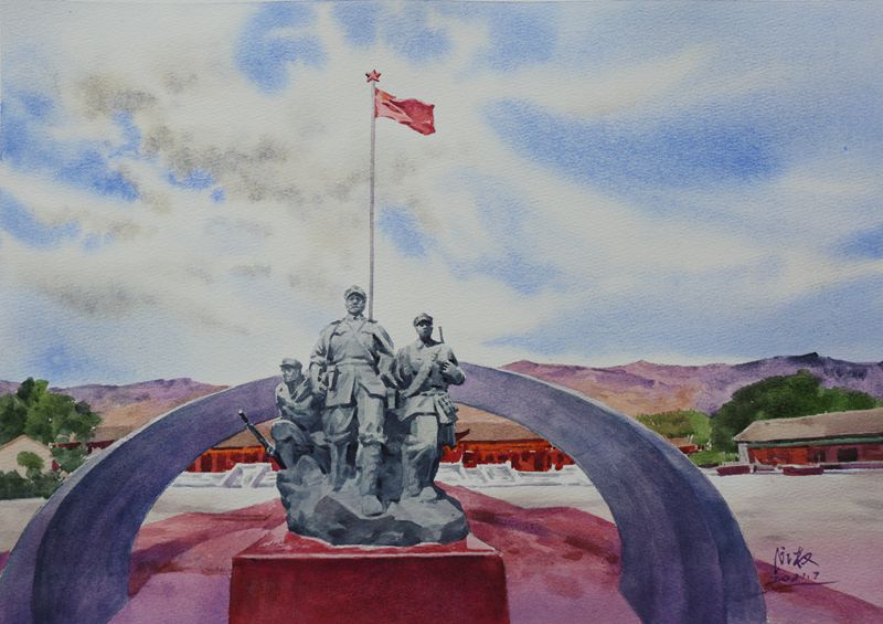 张永权教授水彩画系列作品以我省陇南、甘南、庆阳,宁夏固原、陕西延安、浙江嘉兴等地的革命遗址、纪念馆为创作题材,大体以红军在甘陕等地的活动为顺序,还原发生在陇南等红色热土上的红色革命历史,展现当年开展革命的艰辛,传承和弘扬爱国主义精神,宣传推广红色福地的风土人文精神,以鲜明的红色文化印记,抒发了自己对浴血奋战革命先辈们的缅怀、追思和感恩之情以及对艺术的挚爱之情。