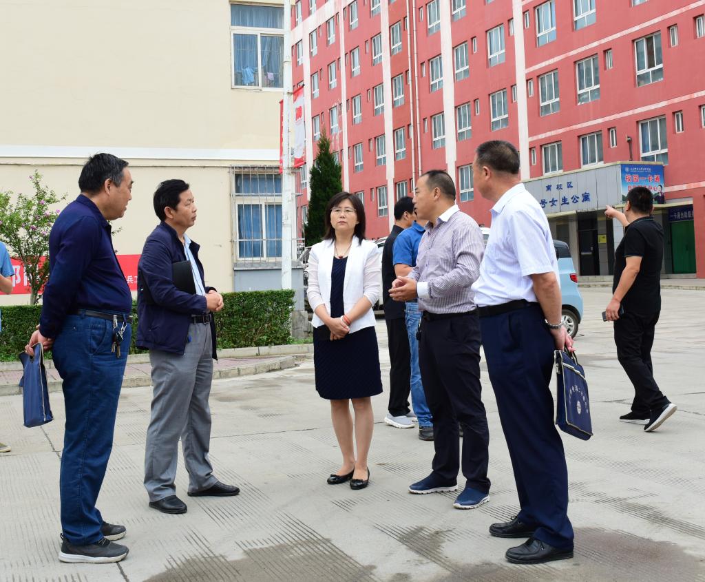 李艳红、王胜青、王录全、张勇带领相关处室负责人对教务处、学生处、后勤处、保卫处、文印室、物资库房、学生宿舍、排水系统进行检查。