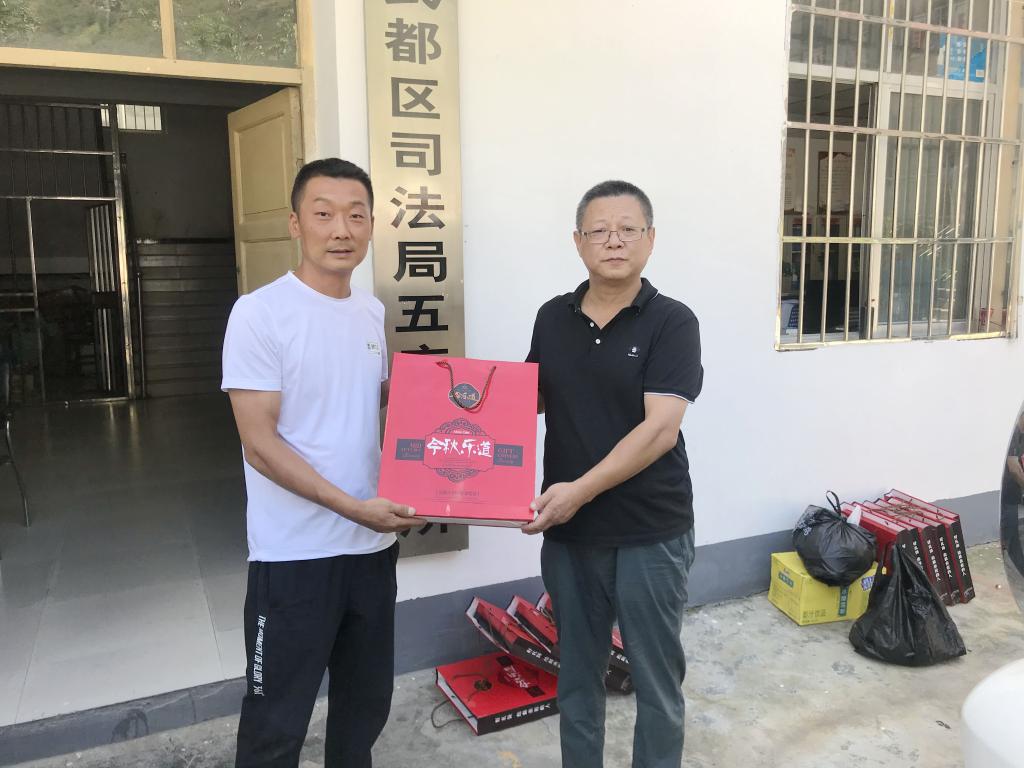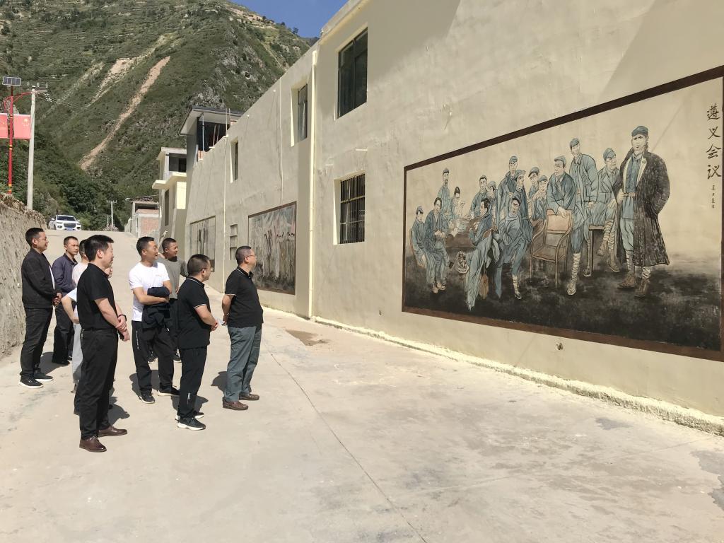 在五库镇,余学军一行在五库镇党委书记尹爱典的陪同下参观了beat365美术与设计学院师生在五库镇王坝村绘制的文化墙,先后查看了各驻村帮扶队办公及生活场所,详细了解了队员们的生活情况,并赠送了水果、月饼和肉等节日慰问品。