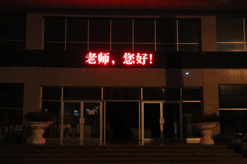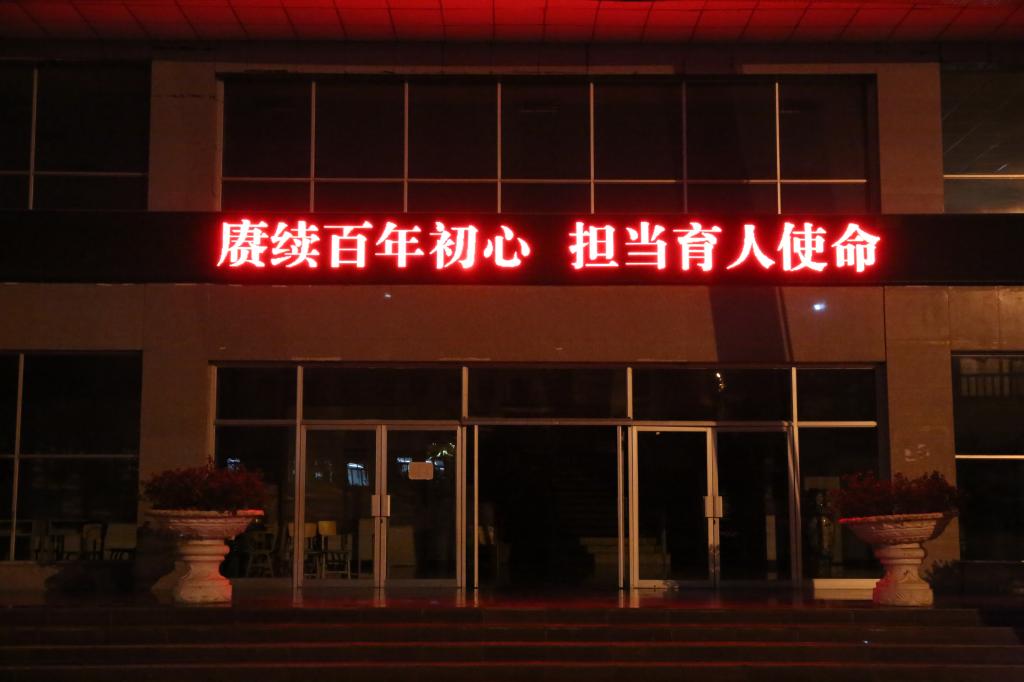 活动中,学校办公楼和科技楼的LED电子大屏以字幕滚动的方式播放了“赓续百年初心,担当育人使命。”“老师,您好!”“教师节快乐!”的字样。体现出了“让教师的荣光在最高处闪耀”的人文情怀,表达了对老师的崇高敬意和真诚祝福。