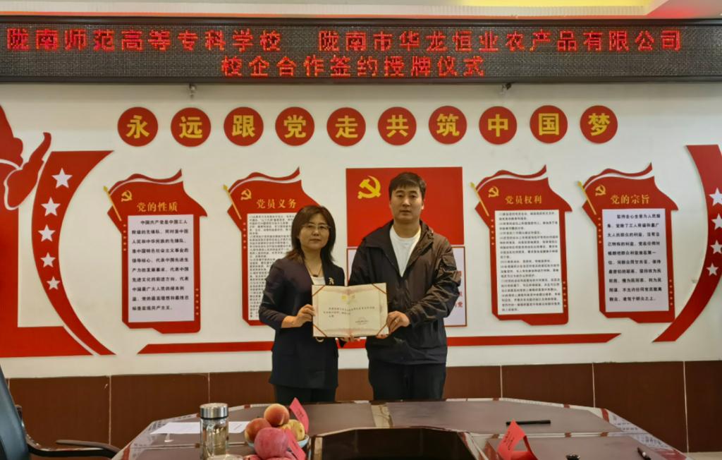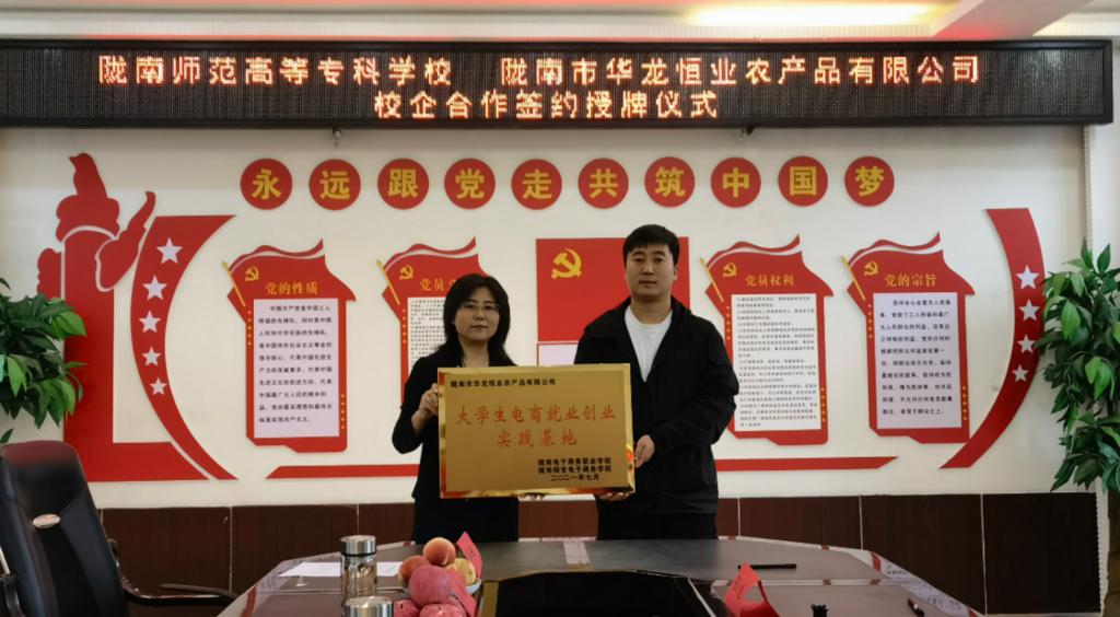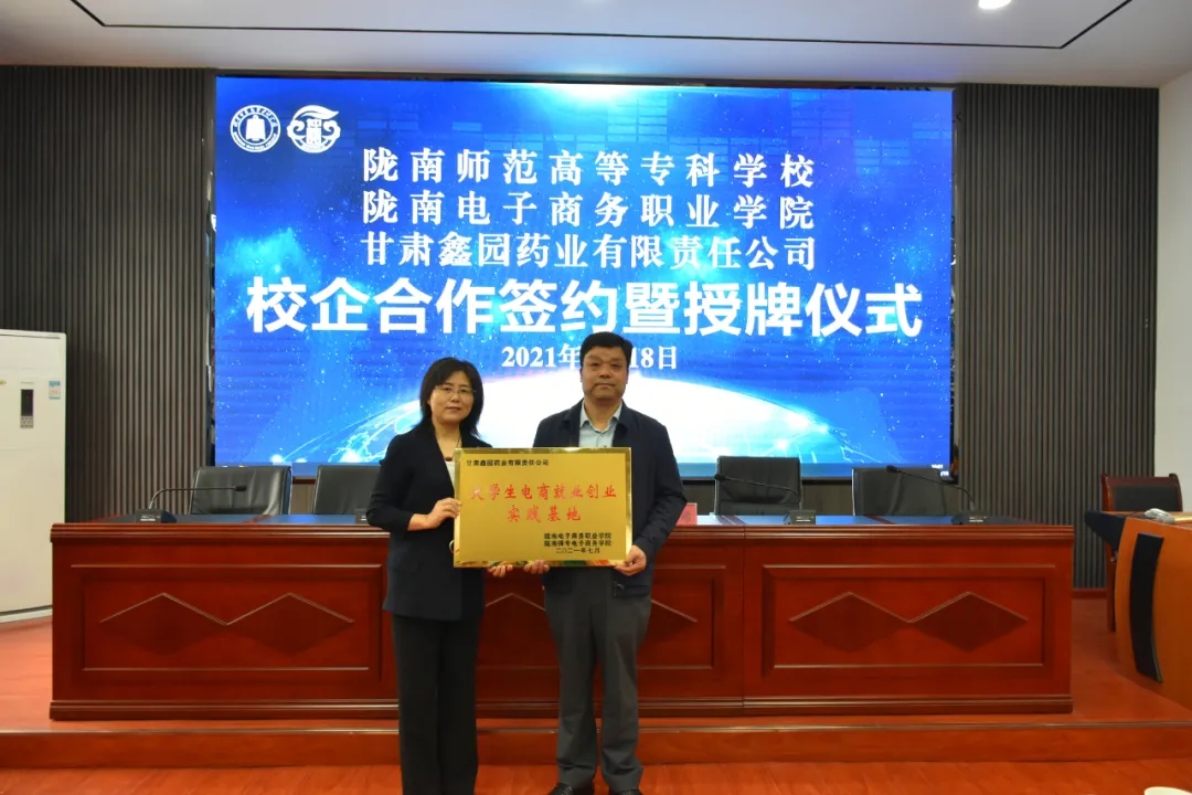 9月18日下午,校长李艳红带领教务处、电子商务学院负责人赴甘肃鑫园药业有限责任公司、陇南市华龙恒业农产品有限公司举行校企合作签约暨授牌仪式。