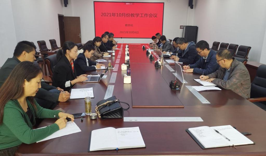 10月6日,学校10月份教学工作会议在图书馆九楼会议室召开,会议由副校长王胜青出席会议并讲话,各学院教学院长、质量监控与评价中心负责人和教务处全体工作人员参加会议,教务处负责人杨建东主持会议。