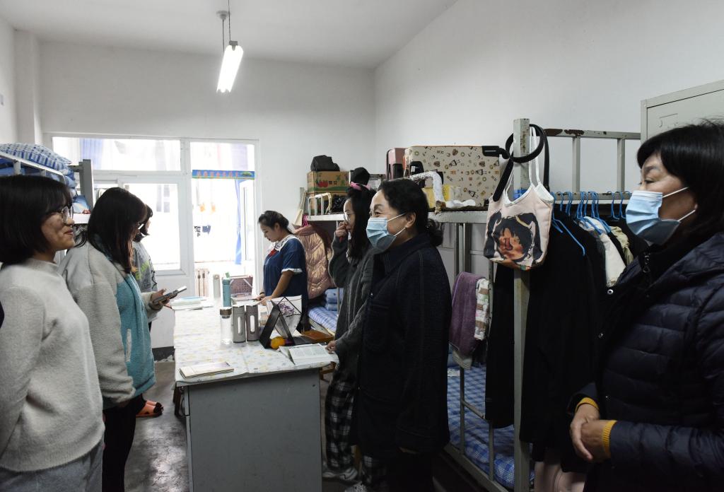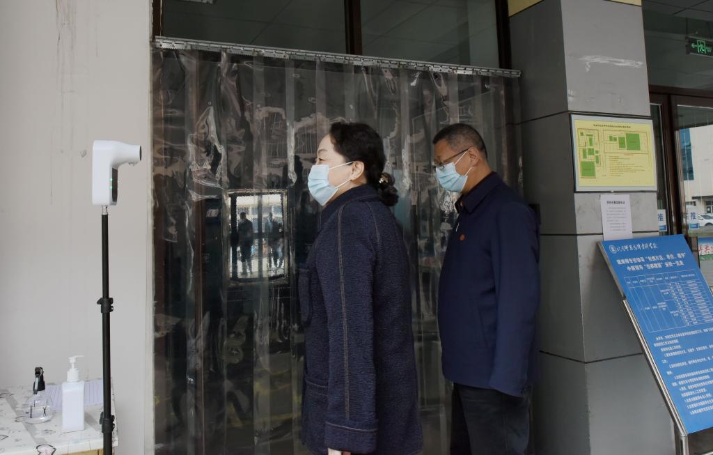 梁英、田晓琴对学生公寓、校食堂、校医院、东校区扩建项目拆迁现场进行实地查看。每到一处,她们都仔细查看了出入人员信息登记表,详细了解体温检测、信息采集、学生管理、餐饮服务、看病就医、物资储备等方面工作情况。