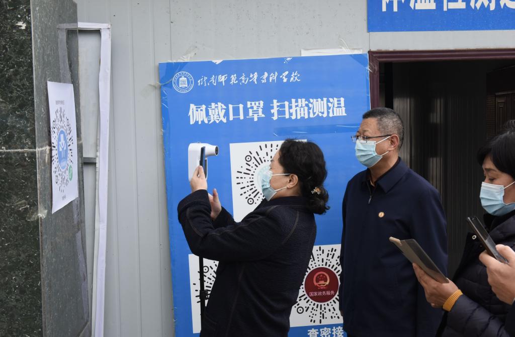 “校外人员入校如何管控和登记?”梁英、田晓琴一行来到学校门口测温通道,逐一了解校门“入口关”的疫情防控措施落实情况,并向坚守在学校疫情防控一线的工作人员表示感谢和慰问,勉励大家要尽心尽责为师生守好门、把好关。
