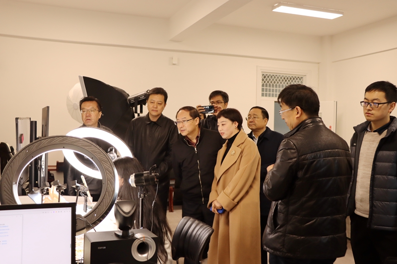 调研组在beat365电子商务学院智慧教室了解远程教学情况