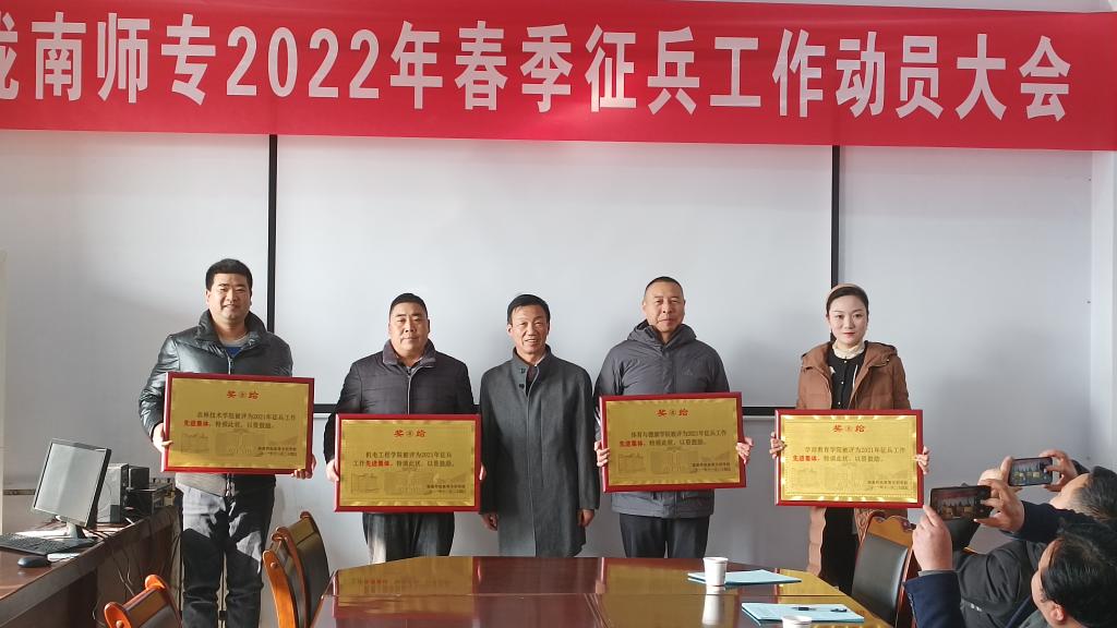 副校长张勇为征兵工作先进集体颁发奖牌