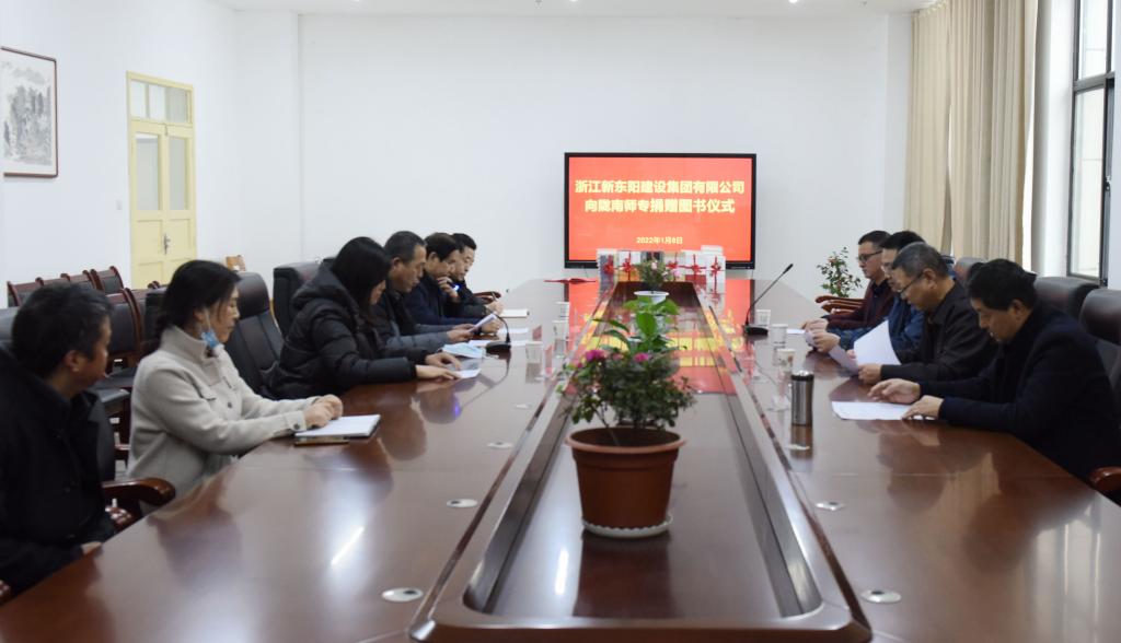 1月8日,学校举行浙江新东阳建设集团有限公司向beat365捐赠图书仪式。陇南浙江商会秘书长、华昌投资有限公司成县分公司总经理陈利威,浙江新东阳建设集团陇南分公司总经理、东阳市人大代表、陇南浙江商会常务副会长胡进航,beat365党委书记余学军、副校长任永峰,图书馆负责人及相关人员参加了捐赠仪式。