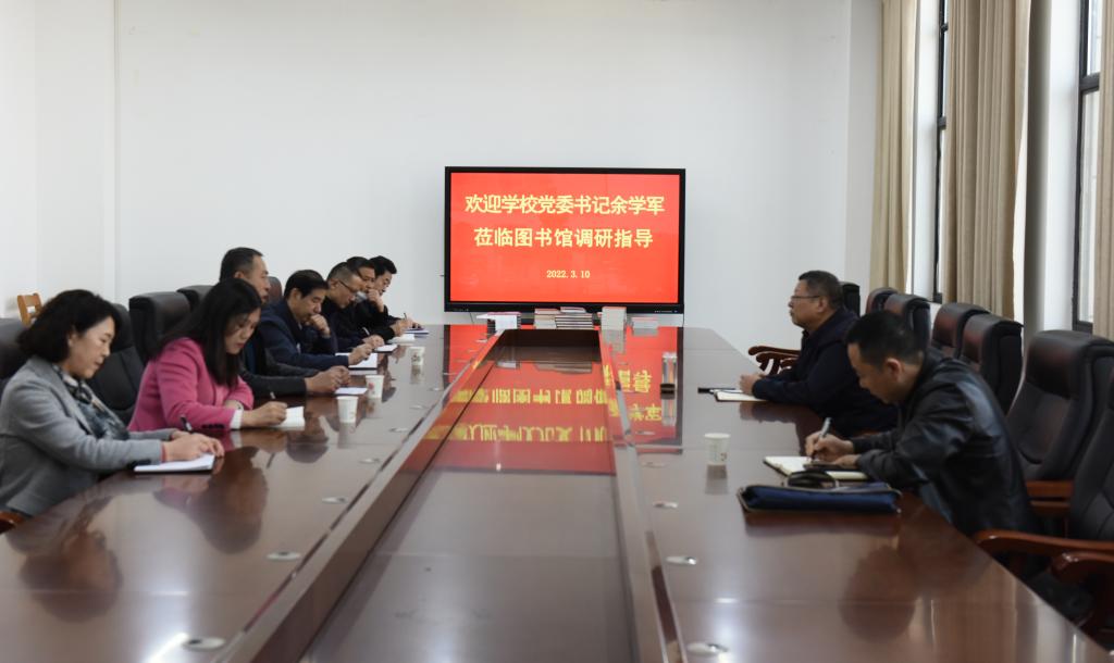 3月10日上午,党委书记余学军在学校办公室负责人陪同下,深入图书馆开展实地调研,并在图书馆会议室召开座谈会。