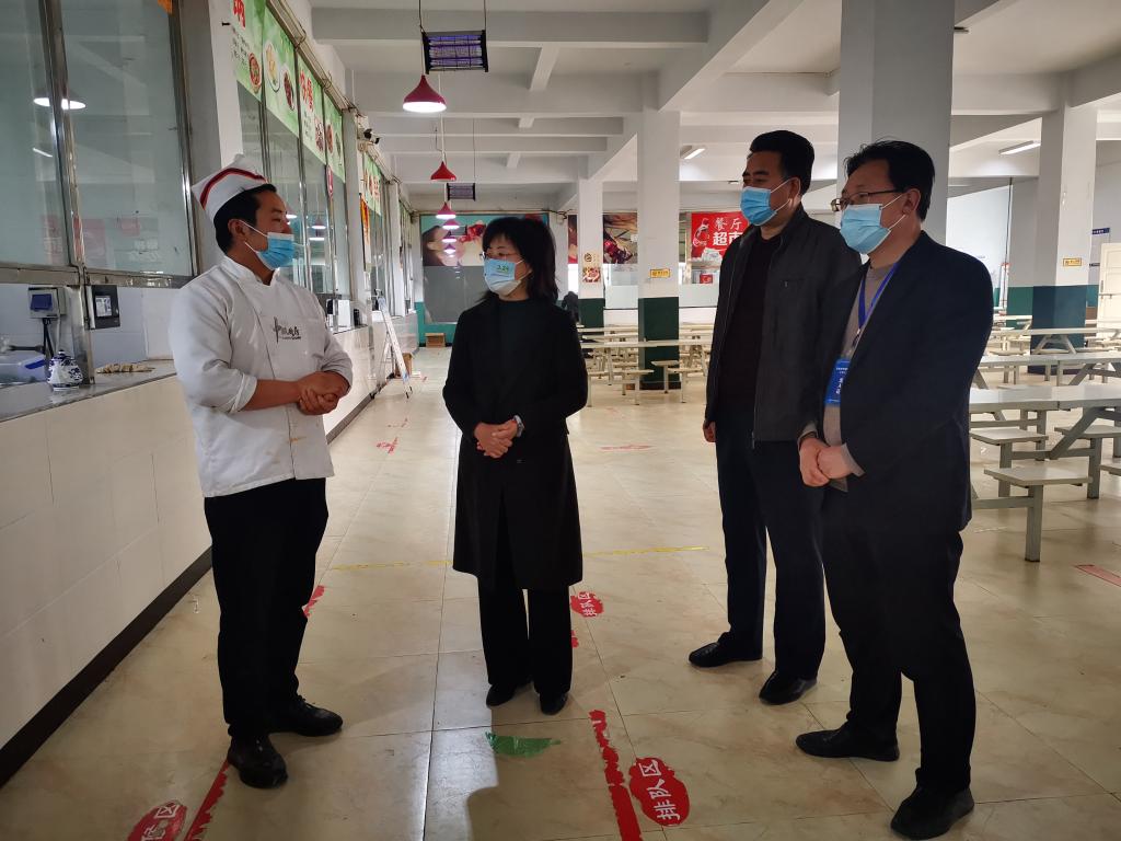 3月26日下午,校长李艳红、副校长王胜青带领校办、教务处、后勤处等部门负责人检查东校区宿舍封控后学生用餐的供应及后勤保障工作。