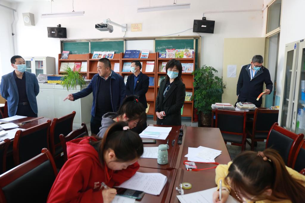 4月6日,校长李艳红带领学校办公室、教务处、学生处、后勤处等部门负责人分别到1号教学楼、2号教学楼检查指导线下教学工作。