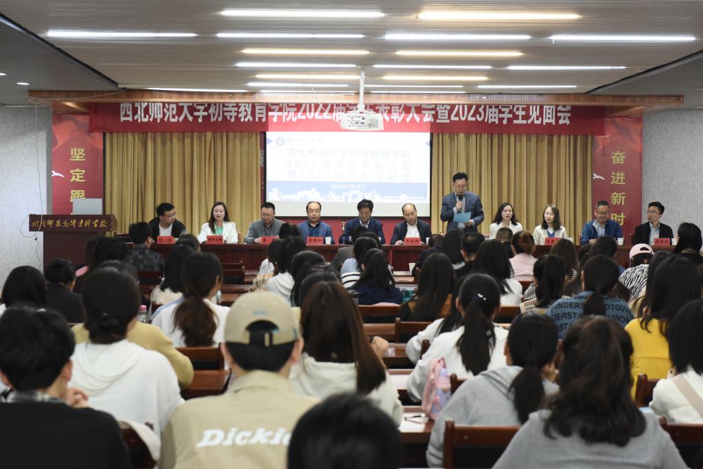 5月18日,西北师范大学初等教育学院2022届毕业生表彰大会暨2021级学生见面会在大学生活动中心召开。西北师范大学副校长董晨钟教授,西北师范大学教务处处长、西北师范大学初等教育学院院长王治和教授,团委书记兼党委学生工作部副部长左丹,西北师范大学和beat365相关部门人员出席了会议,2022届毕业生及2021级学生参加了会议。会议由beat365副校长、西北师范大学初等教育学院执行院长王胜青主持。