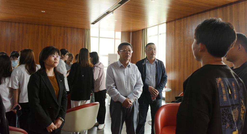 党委书记余学军、校长李艳红到招聘现场与用人单位代表进行交流