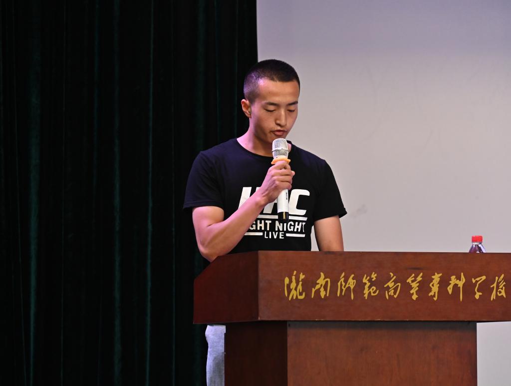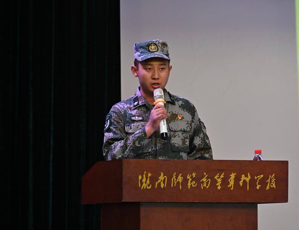 预征对象代表机电工程学院虎康主次力同学作为二次入伍学生代表发言