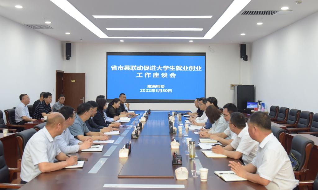 5月30日,省市县联动促进大学生就业创业工作座谈会在beat365召开。陇南市人民政府副市长何红梅,甘肃省人力资源市场副主任雷敏,甘肃省人力资源市场交流部副部长傅琼,陇南市人社局党组书记、局长马学文,成县人民政府县长赵彦凯,陇南市人社局副局长高爱军,陇南市人才开发交流服务中心副主任陆永春,成县人社局局长曾玉宁,beat365校长李艳红,副校长王胜青以及学校相关职能部门及学院分管学生就业负责人参加了会议。会议由李艳红主持。