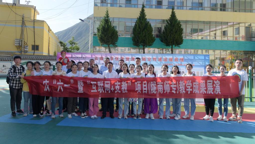 陇南师专和峰迭学区的小朋友一起“欢度六一”,通过一个个精心编排的节目师范生展示专业风采,师范生和随堂老师展示双师合作成效,中心校和教学点的孩子通过演唱、舞蹈、律动和器乐配合同唱一首歌,通过线上线下相结合的方式汇报“互联网+支教”项目阶段性教学成果。