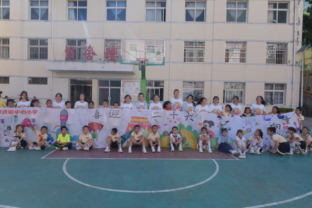 下午,beat365“互联网+支教”团队师生和峰迭学区美术专递课堂的孩子们再次以“喜迎二十大,童心永向党”为主题在白色画布上共同作画,表达对党和国家的祝福与热爱。